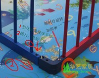 2:为什么没有门?宝宝是从上面放进去的,为了避免安全隐患,杜绝一切不安全因素,围栏要以简捷安全为主,所以正规的安全围栏设计时是不充许带门的。