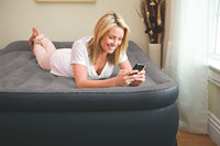 「产品名称」INTEX67736豪华带枕式空气床 「产品规格」157*203*48CM(宽*长*高) 「包装尺寸」46*37*17CM(长*宽*高) 「产品颜色」灰色 「产品重量」7.5KG出厂配置 「产品承重」272KG 「产品材质」0.53mm(21.2ga)防水植绒表面及0.38mm(15ga)的塑胶材料底部 「产品特点」 ○设计合理:重型卡车也压不坏的充气床,承重272KG(双人床,单人床136KG),耐冲撞5000次以上,INTEX充气床采用特殊的充气设计,使不同体重的人睡在上面,决不会出现空气全往一边跑的现象。 ○舒适温馨:依据“人体工学”原理设计,利用空气的浮力能将人的身体均匀托持,实现睡床与人体紧密贴合,颈椎、腰椎、腿腕不再悬空,有利于尽快消除疲劳,为您创造自然、舒适、健康的优质睡眠! ○优质材料:使用超坚固热碳增韧聚合pvc,表面植上高分子灯心绒,采用国际一流的缝接工艺,按国际标准严格检测而成。科学的设计使其不仅具有当今床具的美观形体,而且更有着普通床垫的舒适度 ○ 美观方便:充气床体积小、重量轻,放掉气后的体积跟一般家用床单的体积一样大,可折叠起来装进背包随身携带。 ○ 应用场合:如经常搬家的打工一族、家里来客临时铺床、办公室午休小睡、旅游露营、水上休闲。有时用做柔软床垫更为生活增加烂漫刺激。 ○ 送礼佳品:出差、旅游的一个必备品!也是送给朋友的好礼物!试想你的朋友或男女朋友睡在你送的舒适的INTEX空气床上,他将永远(经久耐用)记住你的情怀。 「标准配件」手提包装彩盒,便携袋,12国语言说明书(最后几页中文),修补片(6*6CM大小的黄色纸片 勿当说明书或折纸片丢了) 「执行标准」国标GB-6675,美国ASTMF-963,欧盟EN-71