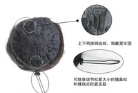 ●丸子发包的佩戴很简单,只要将自己的头发高高束起后盘成发髻,将发包套在自己的头发上,用发带束紧后缠绕至自己的发髻上固定即可。