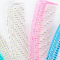 钢梳的钢齿是活动的,顶端是圆形,不伤发