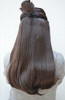 嫌长的MM可以把梨花发片往上接一点,下摆的效果就会显短些了哦