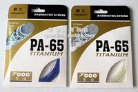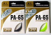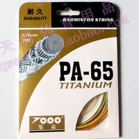 特点:线芯材料采用最新高端树脂合成加高强尼龙丝合成,并加入钛线使其长期保持稳定的羽线张力,使良好的耐久性和吸振性能并存,耐打性能达到较好水平,满足要求速度和耐久性球员的耐打性高科技拍线,65TI线在吸振、耐打等性能上都有非常好的表现。外包装背后的各项指标均按国际标准进行测试,PA-65TI线性能基本上日本产BG65线持平,价格却不到BG65线的一半,特点是不怕高磅,耐打和吸振性能最好,弹性球感相对一般,对于追求耐打的球友来说无疑是最划算的一款线了,推荐磅数20-28磅。喜欢综合性能好的请选择PA-95线(点击)。