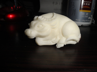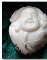 1.刚请回的象牙果雕,先用柔软的棉布盘搓两个星期,然后再用手盘。手一定是要洗净干透。各个部位都要盘到。两三个星期后,你可以感觉表面有粘阻感,这说明已经形成了一层薄薄的包浆。这时可以放置一段时间,进行自然干燥,让包浆硬化.一般是一个星期左右。然后再重复前面的盘磨。一般两三月后,你会看到很有灵气的光泽,有时会呈现较强烈的反光,像琉璃光泽。