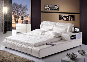 现代时尚床 1.5/1.8米双人床 床箱储物软床 真皮床 榻榻米皮艺床