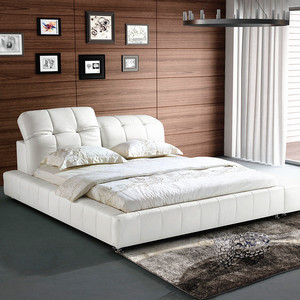 | 材料 | A、实木(床内部框架):床头内部有4个不锈钢功能件,可以根据个人需要上下活动调节。 B、23密度海棉; C、头层真皮 (靠背面为进口真皮或环保皮,床身均为环保皮) D、排骨架以高压缩桦木制成,放于中间支撑整张床垫。 | ||
