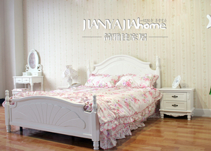 简雅佳 现代田园双人床婚床1.5/1.8米实木床 公主床 特价2069