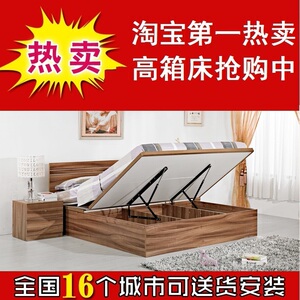 瑞信家具特价气压高箱床板式床双人床1.5米1.8米收纳床储物床胡桃