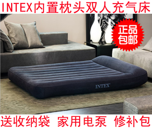 「产品名称」INTEX66768深灰条纹带枕式植绒双人空气床