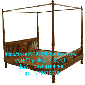 D022榆木 中式 古典 架子床 原木 床 全实木床 1.5米 1.2米 特价