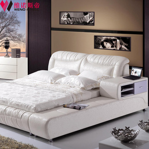 床头接触面采用上等的白色花进口牛皮,质感柔软并带微微的清香味,加宽床沿的优雅设计加内嵌的床头柜,并带储物的功能,床尾采用时尚流行褶皱,无需刻意修饰,更显自然效果,简洁大方,追求一种恬淡惬意的生活 | ||