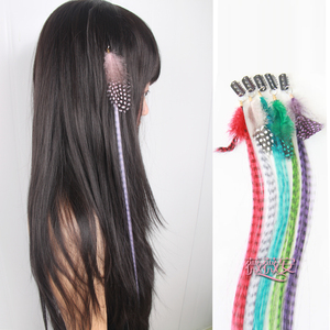 薇薇安假发 欧美热卖羽毛接发片 条纹夹子舞会彩色发饰