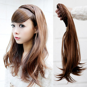 SILVI 假发 麻花辫发箍半头假发 微卷直发接发 内附卡子 Y-1