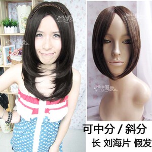 中分刘海假刘海发片 斜齐刘海修脸内卷刘海仿真发假发.真人实拍