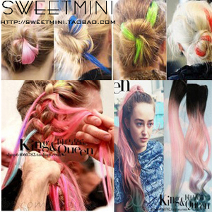此种发片不伤头发不费时间,比起染色化学成分伤身体的那种好的多哦 diy产品的最佳选择 店主自留荧光粉色!