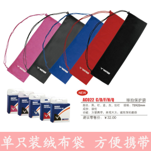 产品参数:品 牌:VICTOR (国内 大品牌)型 号:AC022 球拍布绒袋颜 色:蓝色 红色 灰色 紫色 黑色小类名称:羽毛球包材 质:涤纶规 格:长:72cm 宽:22cm容 量:1-2支球拍产 地:中国适合对象:初中级球友功能说明:方便携带 美观大方 避免球拍磨损市 场 价:32元