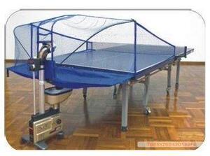 V-988型乒乓球发球机,带回收网。采用铝合金、优质钢材、工程塑料等材料制造,它设有自动回收球系统,产品具有外型美观,操作简便,不会卡球,故障率低等特点。