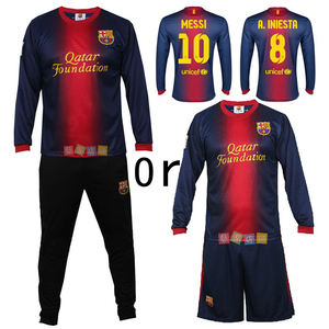 防寒巴萨足球服 训练裤收腿裤梅西对抗服长袖主场训练服 巴萨球衣