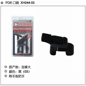 FOX40经由国际级篮球专业裁判员Ron Foxcroft 推荐使用。FOX40哨子,能完全盖过人群声浪及环境噪音,运用于运动、户外救生、探险救灾、控制场面、训练动物、演唱会欢呼等等...。产品遍及全球---包括NFL、NCAA、NBA、CFL、FIBA和FIFA等...都是FOX 40爱用团体,今天这独特的口哨是赛会组织第一的选择! 口哨的挑选:选择一个声大、音高、声尖的高频率的口哨,目前被广大裁判员公认的最好的口哨是---FOX40:是加拿大生产的狐狸牌三孔眼口哨。此口哨的优点:一为省力,用小劲吹就能发出大、高、尖的音。二是好含,此口哨的嘴扁平而长,容易含在口中。三是好听,声音清脆,音高,但不刺耳。 FOX 40是少数口哨产品中,没有内部可动部份或枝条隔间设计,此设计可减少阻塞声音并且清洗方便。FOX 40专利的三室空间设计可强迫搬移空气,使声音大声的发出来 。大多数的口哨内部都有软木塞,但软木塞会因使用者的口水及湿气产生隆起及恶臭,而FOX 40口哨都没有这些问题。它的身体和内部是使用耐冲击A.B.S.塑料注射模型而成,即使浸入到水里也没有恶化或失声等问题。特殊设计使清洗内部空间相当方便,可防止细菌的滋生并有防结冰功能,绝对是紧急状况下不可缺少的声音装置。 国际哨音码 <注意事项> 鸣哨的方法:要使口哨吹得更响亮,以下几种方式可供消费者参考。 | ||