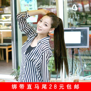 包邮假发实拍日系公主逼真哑光超自然捆绑中长直发绑带假马尾辫