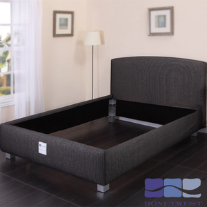 1、根据人体工程学设计,用棉涤面料包覆床板和床架,增加了舒适度。床框采用实木材质,结实耐用。床脚采用钢材材质,牢固可靠。