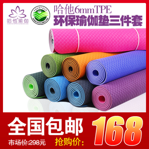 包邮特价 哈他正品高级加厚6mm瑜伽垫tpe防滑环保瑜珈垫子3件套