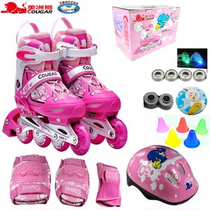 正品美洲狮MS737 闪光儿童溜冰鞋全套装可调直排轮滑鞋滑冰旱冰鞋