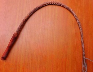 漂亮的牛皮马鞭,采用八根经过多道程序加工的,头层牛皮细条经祖传手工艺精编而成。造型独特,做工精细、内衬钢丝、结实耐用、样式美观。