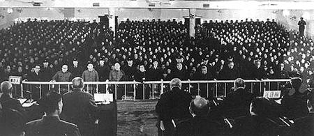 1980年11月20日,最高人民法院特别法庭开庭,公审林彪、江青反革命集团案的主犯江青、张春桥、姚文元、王洪文、陈伯达、黄永胜、吴法宪、李作鹏、邱会作、江腾蛟。