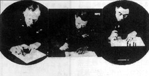 张治中(中)与周恩来(右)、马歇尔(左)在《关于军队整编及统编中共部队为国军之基本方案》上签字。 1946年2月25日,由国民党政府代表张治中与中共代表周恩来、美国政府特使马歇尔组成的军事三人小组,就《关于军队整编及统编中共部队为国军之基本方案》达成协议后,在重庆正式签字。