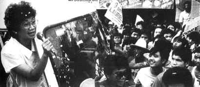 阿基诺在她的支持者当中进行演说