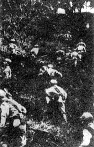 广西人民解放军与当地人民一起追歼逃匪