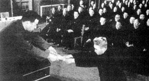原国民党十二兵团司令黄维接受特赦释放通知书