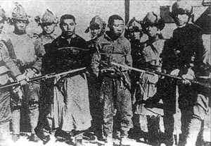 降,因为他们对抗日士兵的压迫、遣散与屠杀,使中国士兵大批的死在帝国主义